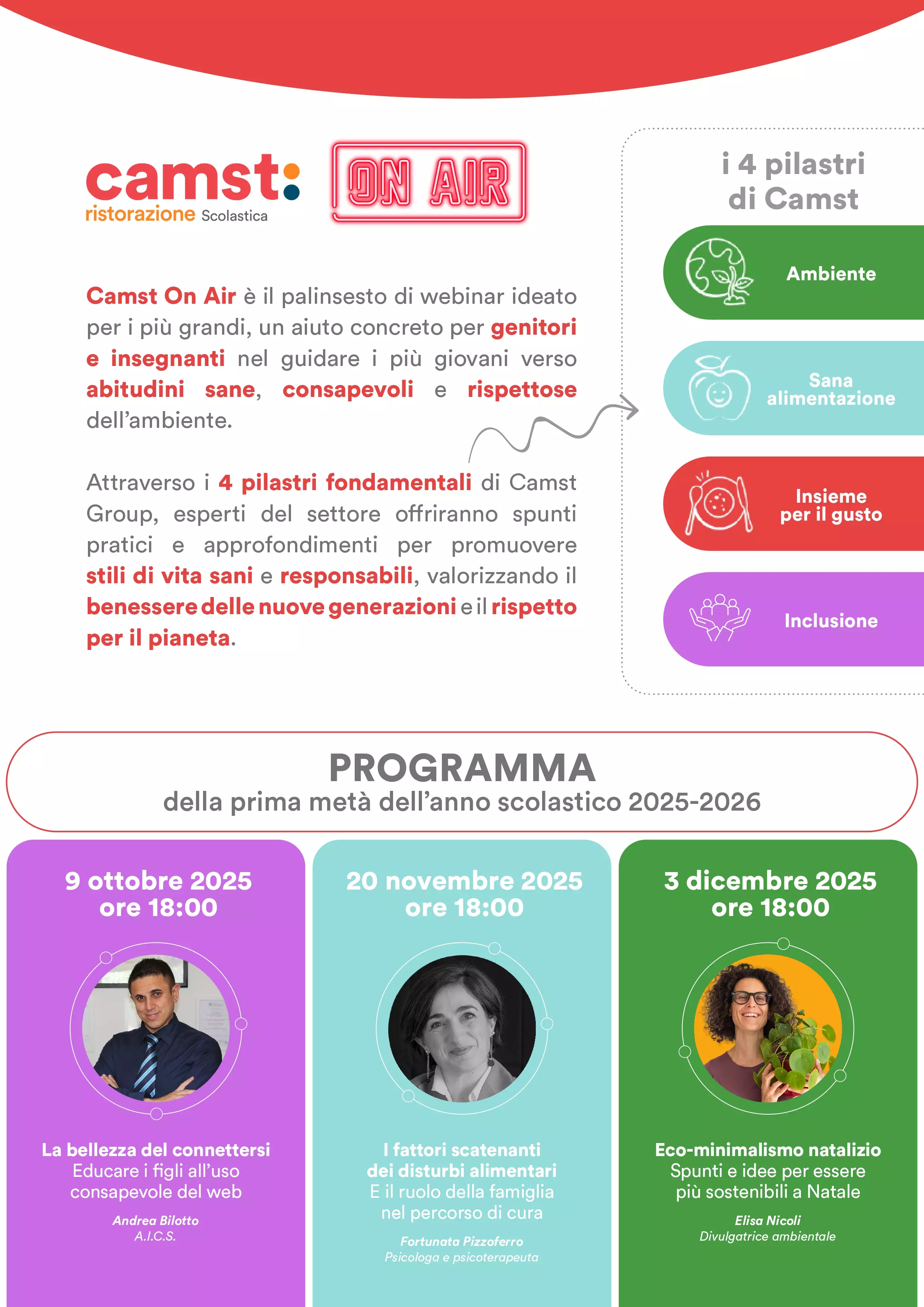 Descrizione "Programma CAMST on air della prima metà dell’anno scolastico 2025-2026" a cura di CAMST on air - ristorazione scolastica