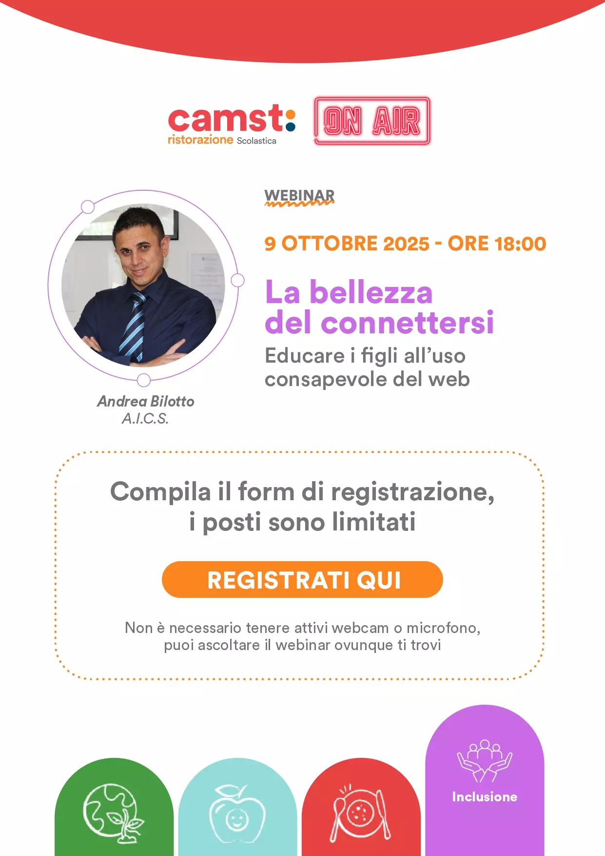 Descrizione "La bellezza del connettersi. Educare i figli all’uso consapevole del web" a cura di CAMST on air - ristorazione scolastica